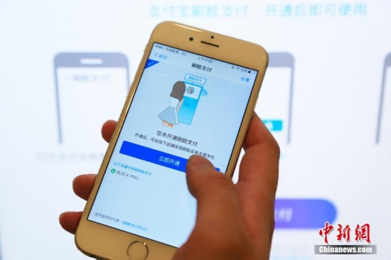 9月19日,刷脸支付需要先在支付宝APP上开通该项服务。近日,支付宝在杭州一家餐厅首次推出刷脸支付服务,用户开通该项功能后只需绑定手机号,通过支付平台刷脸即可完成交易,再也无须担心付款时手机没电或者忘带的尴尬。中新社记者 王远 摄