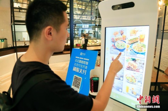 9月19日,顾客正在餐厅自助点餐。近日,杭州一家餐厅首次推出刷脸支付服务,用户开通该项功能后只需绑定手机号,通过支付平台刷脸即可完成交易,再也无须担心付款时手机没电或者忘带的尴尬。中新社记者 王远 摄