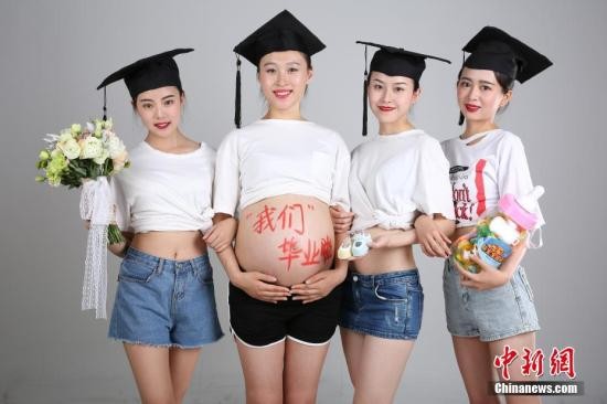 近日,四川一高校的空中乘务专业毕业生潘红莉拍摄的一组“孕”味十足的大肚毕业照吸引了众多人的关注。(图为资料图) 毛成山 摄
