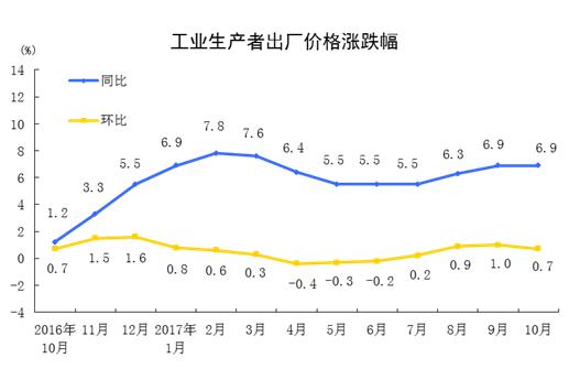 统计局:10月份PPI同比上涨6.9% 环比上涨0.7%