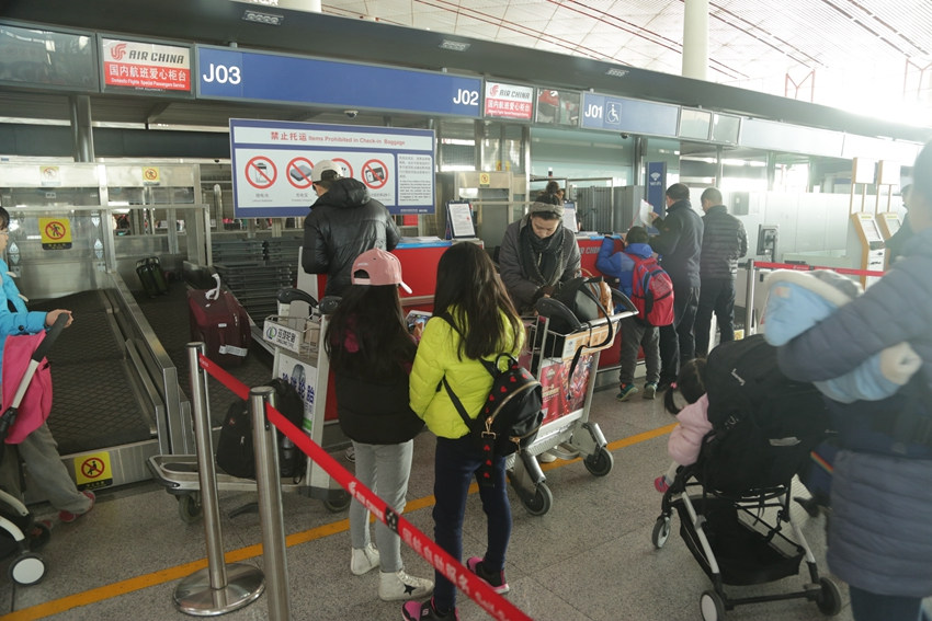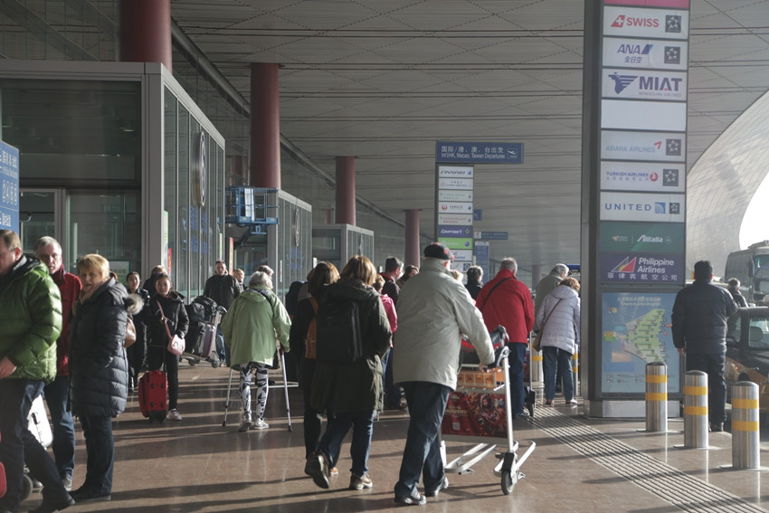 北京首都国际机场3号航站楼出发口,出行的旅客们已经络绎不绝
