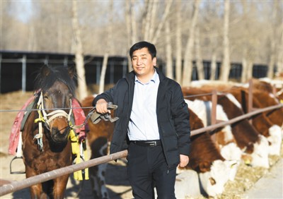 | 全国人大代表吴云波是内蒙古自治区扎鲁特旗巴彦塔拉苏木东萨拉嘎查党支部书记。2013年起,吴云波组建合作社,吸收农牧民加入。目前合作社总资产达到3400万元,2017年净利润360万元,带动37户贫困户稳定脱贫。这是吴云波在合作社养殖基地(2月25日摄)。 |