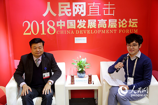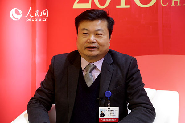 广州医药集团董事长李楚源做客人民网现场访谈间接受人民网记者专访。(摄影:王子侯)