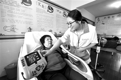 保险业内人士分析认为,伴随民众保险意识的不断提升,“医疗+重疾”的商业保险保障有望成为越来越多保险客户的“标配”。这也将为健康险市场转型提供更强劲的动力。图为3月27日,护理员在福建省晋江市磁灶镇大埔村敬老院中医康复室为老人操控按摩椅。 记者 宋为伟 摄