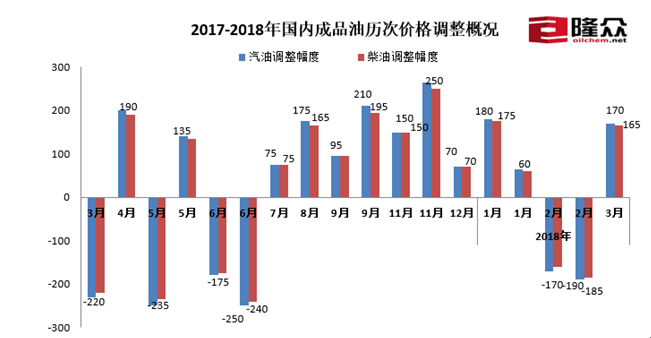 人民网北京3月28日电 (朱江)今日,记者从隆众、卓创社会监测机构获悉,3月29日零时将上调汽柴油限价,每吨汽油上调170、柴油上调165元,折合每升89#0.13、92#0.13、95#0.14、0#0.14元。隆众原油分析师李彦表示,本次调价是今年第三次上调,本次调价过后,2018年成品油调价将呈现“三涨两跌一搁浅”的格局。