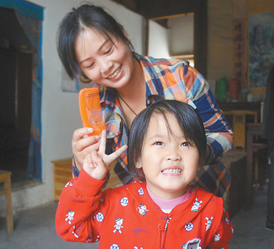 | 图为金玉琴在帮助村民的孩子梳头。 |