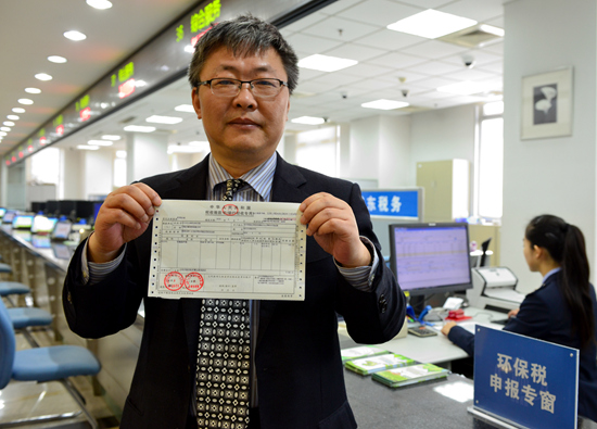 领取首张环保税发票的财务人员表示,环境保护费改税后企业因污染物排放量低于国家标准,享受到了税收优惠。应交9400多元,减免近600元,实际缴纳的环境保护税税款是8800多元。“税收优惠政策进一步增强了我们优化生产工艺,减少污染物排放,提高环保处理设施运行效率的动力。”他说。
