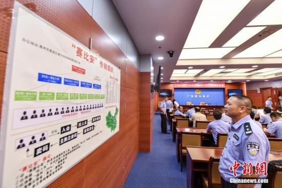 资料图:广东省公安厅内展示的“赛比安”网络传销组织架构图。中新社记者 陈骥旻 摄