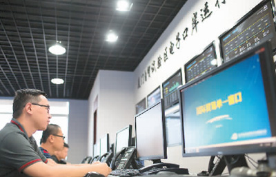 | 图为工作人员在厦门自贸试验区电子口岸运行监控中心监测运行数据。 |