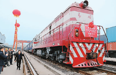 | 图为日前一列上海开往莫斯科的中欧班列在上海杨浦站发车。 |