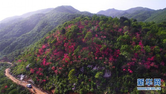 近日,大别山腹地的安徽省金寨县铁冲乡铁冲村陈家寨林场和金刚台风景区两处山野,近万亩野生映山红花开成海,吸引众多游客踏春赏花,享受春光。DWi安康新闻网