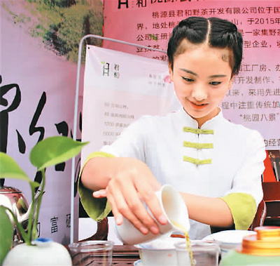 | 茶艺师表演桃源红茶的冲泡技艺。 |