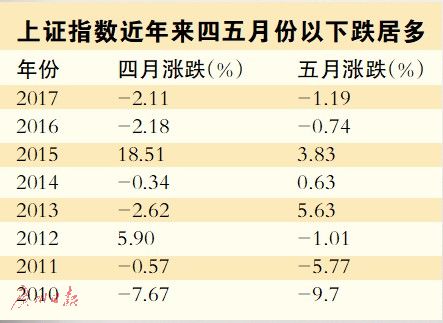 有券商从近5年的数据来分析发现,A股市场每年的4月、5月行情多数出现回调。无论上证指数还是创业板指在4月和5月都跌多涨少,其中创业板指数波动幅度相对较大。