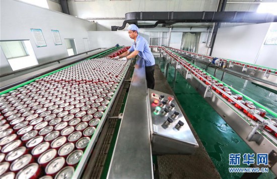 5月2日,江西广昌一家食品公司的工人在罐装荷叶茶生产线上忙碌。VUt安康新闻网