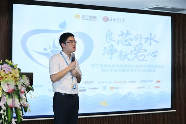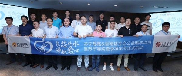 2018年7月10日,苏宁易购联合爱德基金会,在启动夏季净水节的同时,正式开展“良芯好水 净献爱心”公益助学项目。7月13日至7月29日,苏宁易购全渠道指定净水器每卖出1台,将捐赠10元至爱德基金会,用于资助孤儿大学生上学。