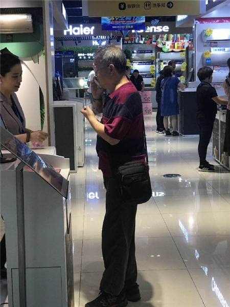 一位年过六旬的老人,一会儿工夫向一位空调导购员鞠躬五次,每次90度。这一幕,发生在南京新街口苏宁易购云店的空调专区。