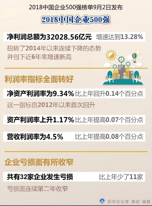 新华社西安9月2日电(记者许晟 张骏贺)2018中国企业500强榜单2日在西安发布,500强企业净利润总额为32028.56亿元,增速达到13.28%,扭转了2014年以来连续下降的态势,并创下近6年来增速新高。
