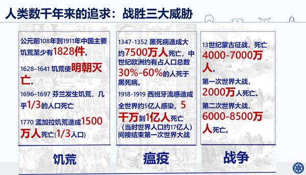 过去几千年来,人类的需求其实有一个基本的规律。在历史上,人类多少年来困惑于瘟疫、饥荒和战争,所以战胜这三大挑战就是人类长期以来主要的追求。过去因为要满足人类的生存需求、温饱需求,所以在300年前人类启动了第一次的科学革命和工业革命,它为我们带来了全方位的变化。在200多年前,为了满足人类不断增长的需求,人们开始经历了第二次的科学革命和第二次的工业革命,在过去的100年的时间里,我们经历了第三次科技革命和第三次工业革命,它为我们带来了全面的变化。包括在农业方面、工业方面,在我们的社交、健康、尊严这些方面都带来了各种各样的奇迹。更加重要的是今天,万物互联、人工智能和基因编辑,为我们带来了一个新的梦想,新的时代,今天我要告诉大家的是,这个时代其实已经到来了。
