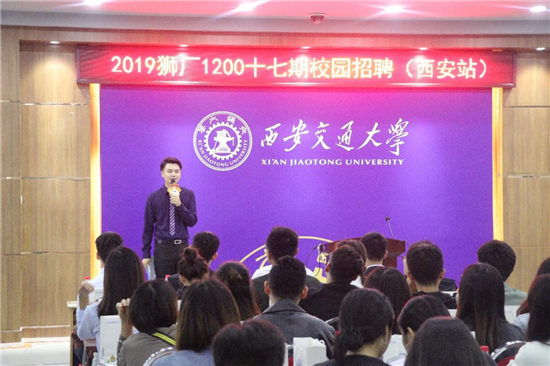 苏宁西安交通大学招聘宣讲会开始前,大量求职学生满怀希冀,进入“狮厂”招聘会常场外有“狮姐”为大家送上精美礼品,场内有“狮兄”为大家指引就座,大屏幕上不断滚动播放宣传片,向每一位到场的学子介绍苏宁八大产业的发展以及招聘需求,每一位学子都能感受到“狮厂”家一般的温暖氛围。