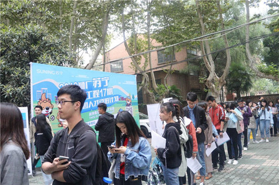 随着2019年“1200工程”十七期校园招聘全球启动发布会9月9日在苏宁易购集团总部所在地南京落下帷幕,9月17日,苏宁集团在西安交通大学兴庆校区开展了“1200工程”十七期校园招聘会,此次招聘宣讲会吸引了大量西安学子的关注,现场座无虚席,300个座位,到场500多位同学。这也从侧面映射出苏宁的“智慧零售”被越来越多的学子所认可,大家都想在苏宁的大舞台上一展风采。