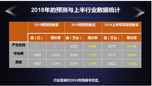 空调峰会主办方产业在线及出席另两家行业调研机构数据显示,上半年行业整体增长在10-20%之间,这个数据远高于年初业内的预测。今年初,苏宁易购发起召开的净肺工程发布会上,产业在线及两家权威市场研究机构中怡康、奥维都对行业做出了判断,其中产业在线判断出货量增长5%,中怡康和奥维均认为行业将以5到7个百分点的幅度小幅下滑,整个行业对2018年空调市场都持保守观点。
