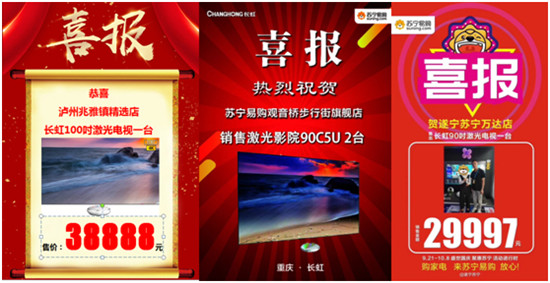 在高端大屏产品推广方面,苏宁将用户体验放在第一位。苏宁利用线下近7000家门店的体验优势,打造高端大屏产品体验区,模拟家居场景,让消费者亲身体验到新产品带来的生活品质提升。在激光影院体验厅,消费者不仅可以看到目前流行的智能电视全部功能,更可以和家人一起玩体感游戏,运用电子教学软件陪孩子读书……