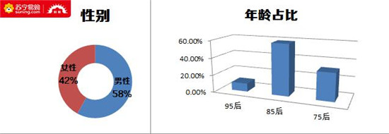 苏宁数据显示,男性用户对卫浴产品的需求高于女性,占比58%。85后消费群体以63.7%的比例成为目前卫浴产品及装修的消费主力军。科技对于85后群体产生较大影响,智能马桶、智能花洒、智能淋浴房的需求量不断提升。