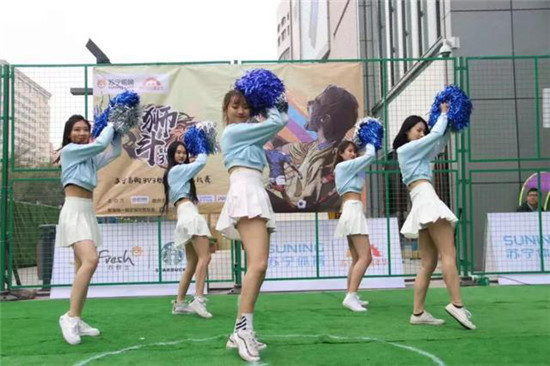 中场休息,活力四射的足球宝贝们为所有战狮加油助威,引爆整个苏宁易购广常
