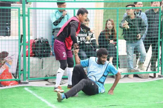下半场更是热血沸腾,比赛进入了白热化阶段。但外国战队Pilucas成员摔倒后,对手却立即上前扶起。