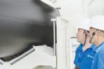 泉恩管业工作人员正在查看大口径PE生产线激光喷码作业。