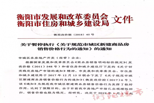 继山东菏泽顶着压力解除限售后,湖南衡阳大胆宣布取消限价。 衡阳楼市微信公众号26日公布衡阳发改委和住建局联合下发的一份文件,自2019年1月1日起暂停执行此前……