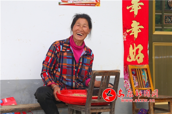 面对镜头,刘昌荣旁边的“年年好”三个字与她的笑脸是那么的贴切。