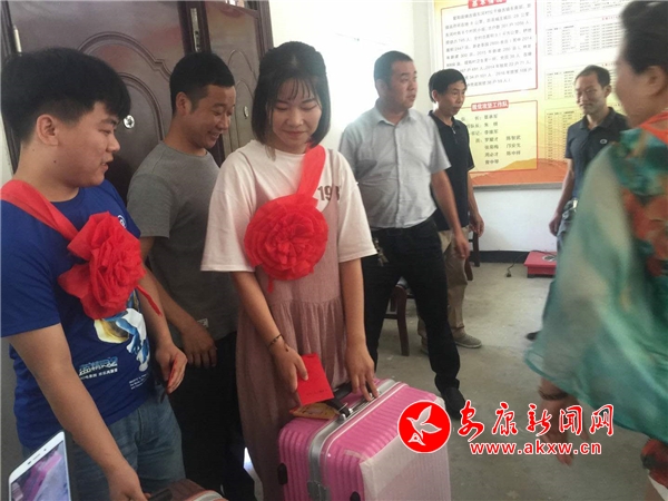 电台副台长刘先强同志、办公室副主任陈欣荣同志、焕古镇脱贫办专职主任贺银巧同志,协村四支力量赴东河村为高考学子举行集体升学仪式。