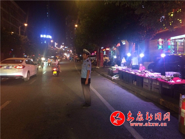 张滩交警中队夜晚持续整治南环东路水果商贩
