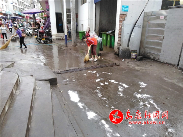 早上六点江北市场办安排人员对学校周边重要路口进行了值守,并组织人员用强碱对垃圾房周边进行了清理,防止发生滑倒事件。