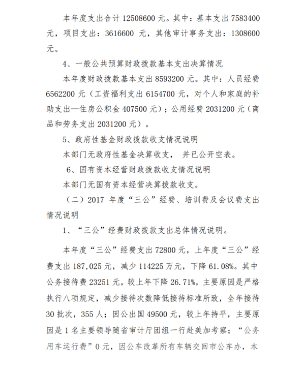安康市审计局2017年部门决算公开说明