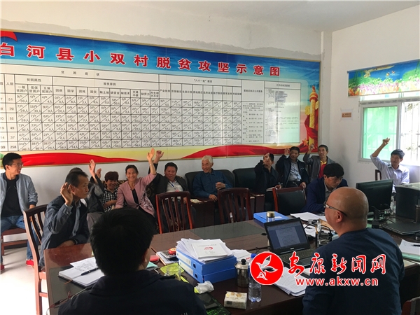白河冷水小双村召开贫困户民主评议,动态调整会议。