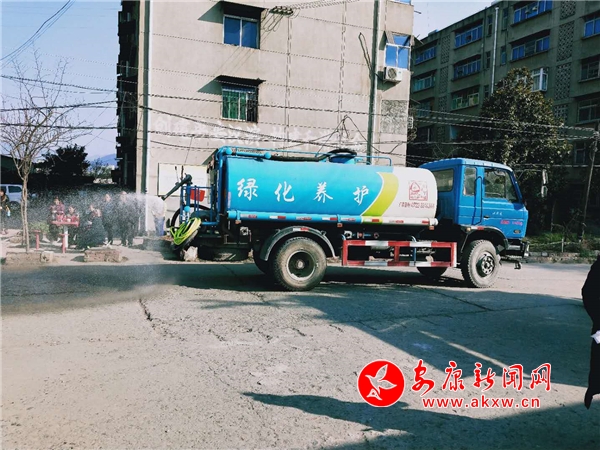 近期天气干燥,为防止扬尘,沙石厂社区与辖区单位新兴达搅拌站负责人协调,利用洒水车对小区内主要干道进行防尘洒水!