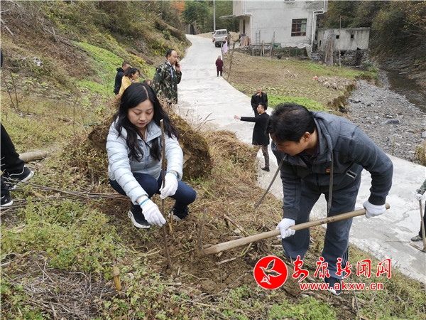 这些栽树的人,是刚刚从安康城区赶来的市审计局的党员干部。当日,该局专门来到花坪村,开展“初心不改、使命不怠,种下希望、成就梦想” 第十次主题党日活动,用自己的双手为花坪村栽上拐枣树苗,用实际行动推进“不忘初心 牢记使命”主题教育深入开展,用为民办实事的务实做法践行初心和使命。