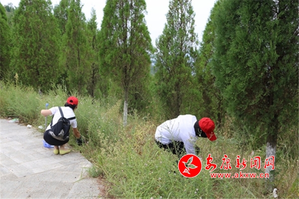 活动中,党员们头戴小红帽、身穿红马甲,经过有序分工,及时投入到了志愿服务中。党员们对香溪洞沿线至牛岭村主干道的果皮箱、马路防护栏、便民设施等进行了清洁擦拭;对公路沿线护坡、绿化林带地面白色垃圾和杂物进行了清理。通过半天时间的环境卫生整治,周围环境焕然一新,为过往群众和游客营造了整洁的活动环境。