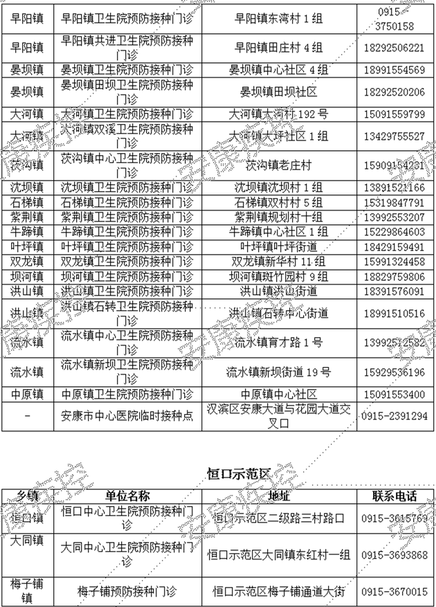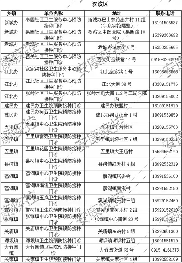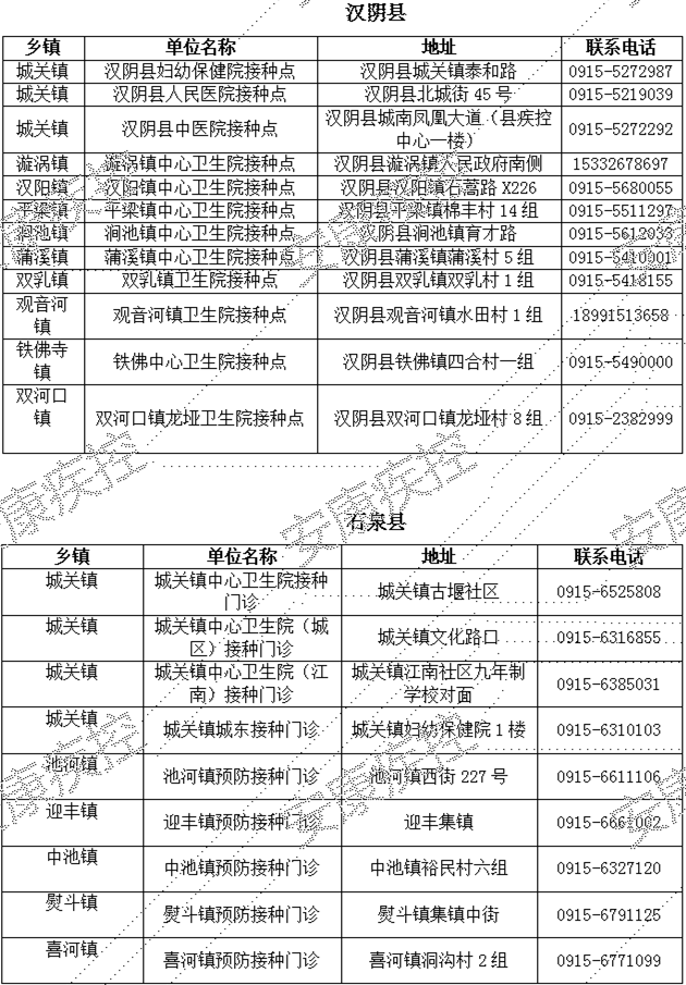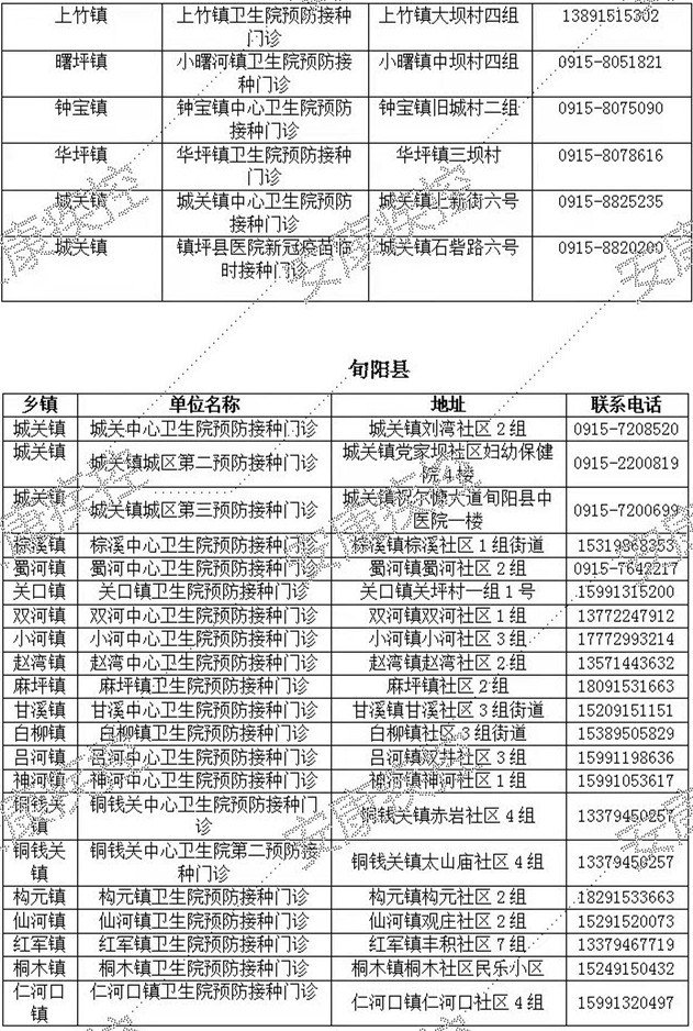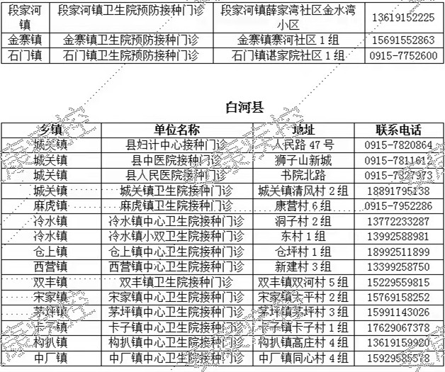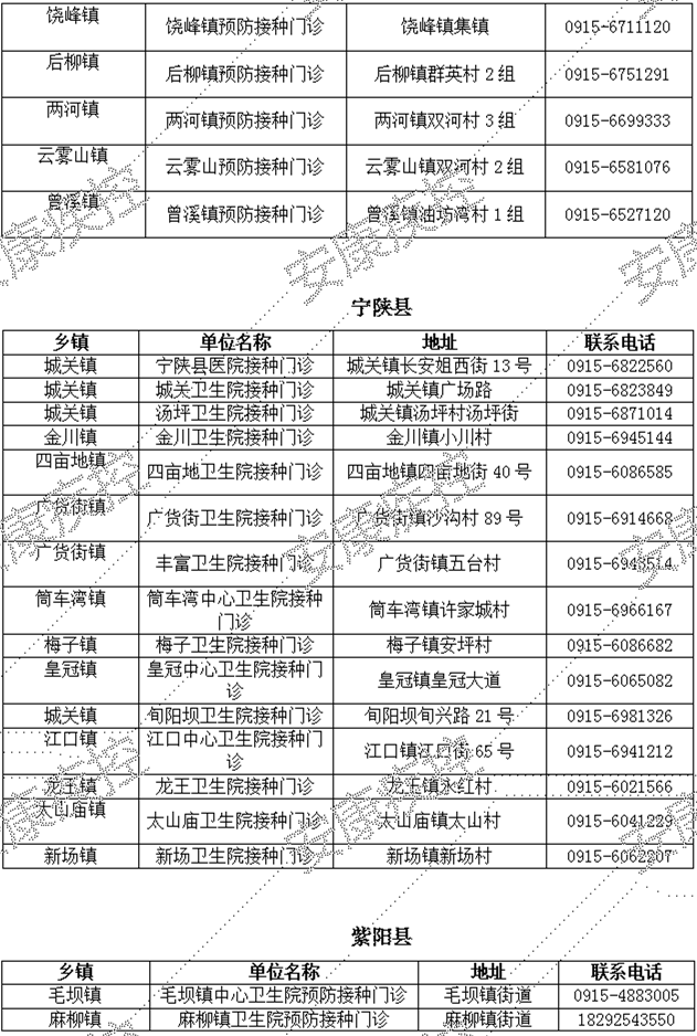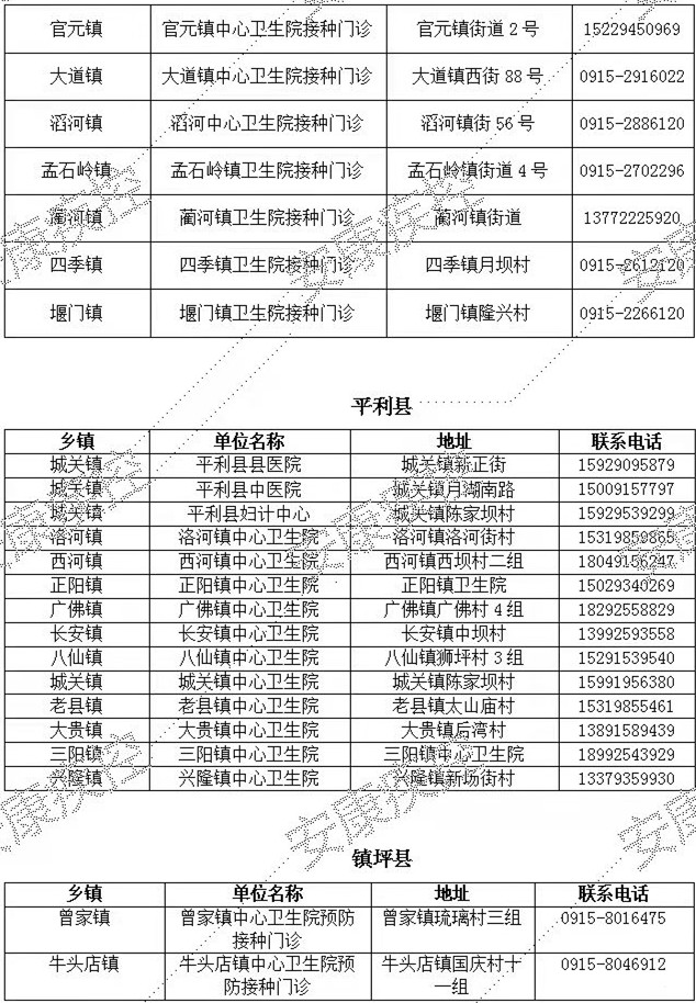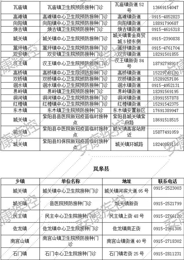 最新!安康市各县(市、区)新冠疫苗接种单位名单