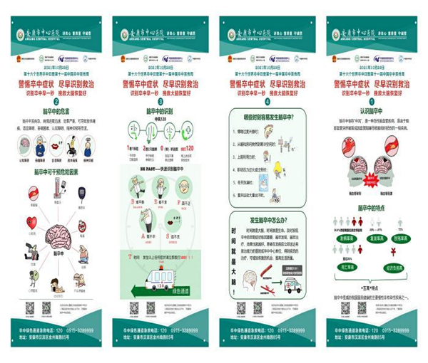 是根据国家卫健委脑防委定义的宣传活动主题,制作了 4 幅宣传展板、1000份宣传折页和宣传横幅;规划筹备拍摄一部“安康市中心医院卒中中心宣传片”;作为国家高级卒中中心和安康市卒中联盟医院,积极引导我市20多家医院开展“世界卒中日”宣传活动。