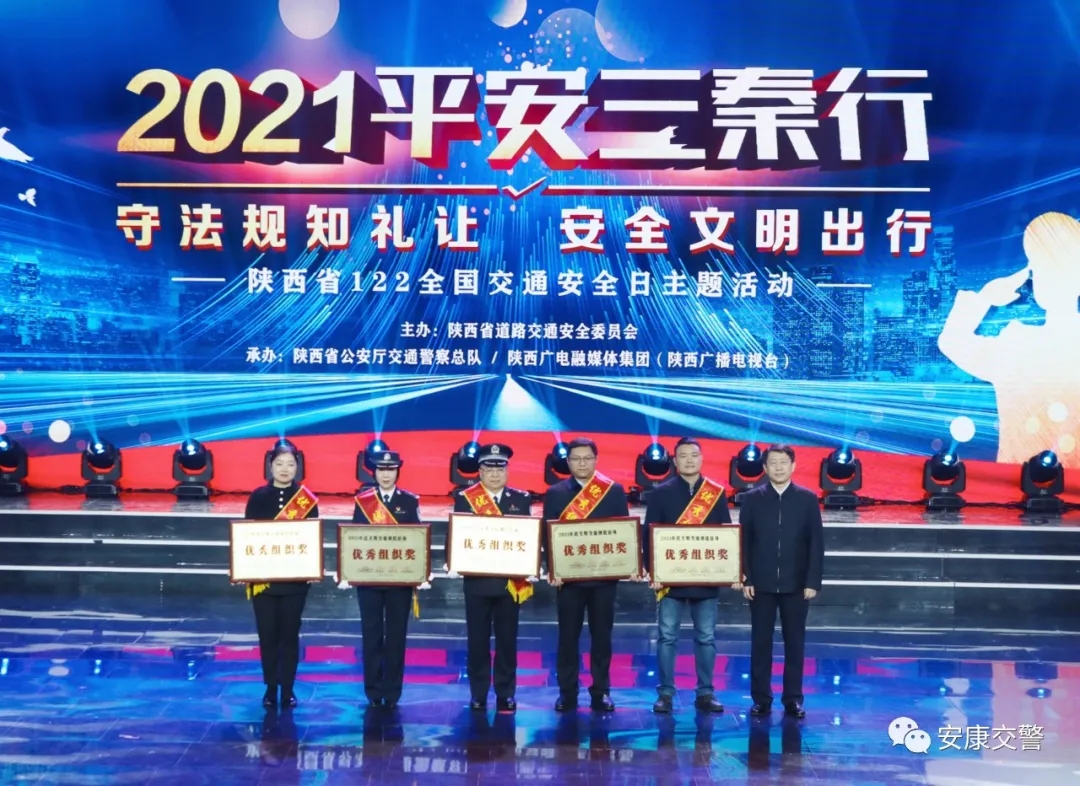 2021年11月24日,由陕西省道路交通安全委员会主办,陕西省公安厅交警总队、陕西广播电视台承办的“2021平安三秦行”陕西省122“全国交通安全日”主题宣传活动在陕西电视台展播厅举行。我市交警覃涛、司机赵吉明、汉滨初中等12个创建对象和3个组织单位,分别被省委文明办、省教育厅、省公安厅、省交通运输厅联合授予表彰为优秀集体、优秀单位、优秀组织奖,安康市公安局交警支队连续4年荣获“优秀组织奖”。