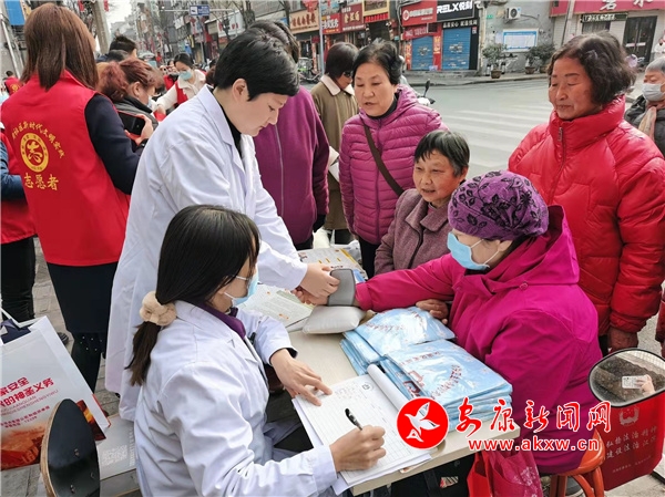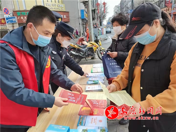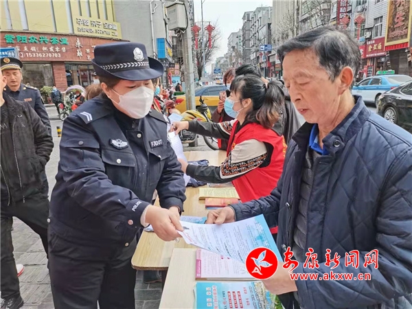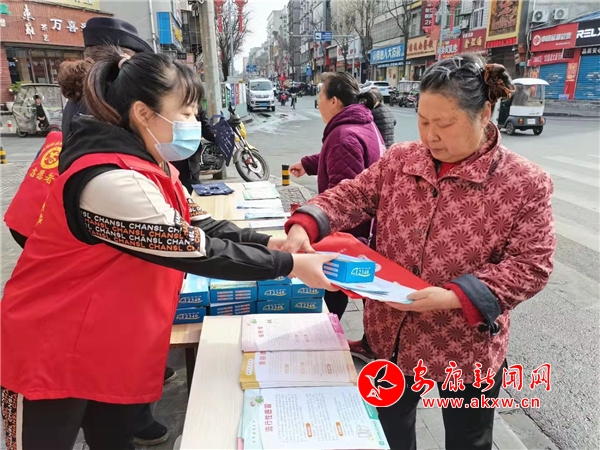 活动主场,志愿者们向辖区居民发放城市文明创建、“八五”普法、防范网络诈骗、垃圾分类、健康保健、安全生产、疫情防控等宣传手册和彩页,详细为过往群众宣传惠民政策法规,免费为居民量血压并赠送方便袋、纸巾、围裙等生活小用品。