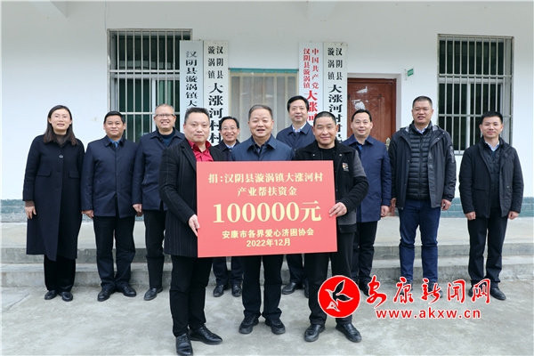 周建功还对基层干部群众关心的巩固拓展脱贫攻坚成果同乡村振兴有效衔接期主要的政策措施进行了解读,并勉励村两委干部当好群众幸福生活的领航员、勉励村党员争做乡村振兴带头人,鼓励各位乡亲争做重农爱乡的奋进者。会上,安康市各界爱心济困协会向漩涡镇大涨河村捐赠了10万元产业帮扶资金,周建功主持了捐赠仪式。