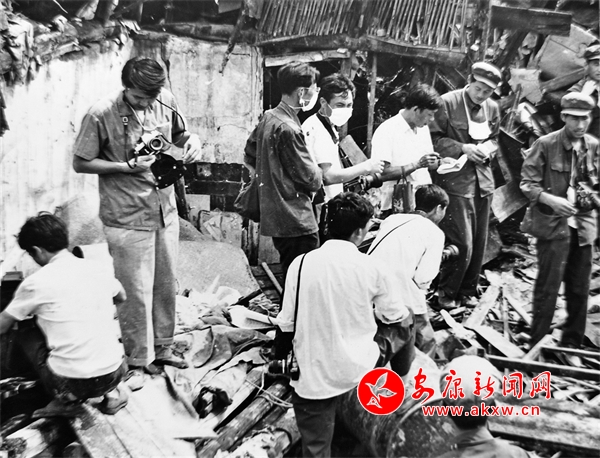 当年我的办公室,也就成为我们的居住地。所好的是,报社的员工和家属没有一个人遇难。也就是从这天开始,我每天骑车子进城采访拍照。到了晚上我拖着疲惫的双腿走进暗房冲洗胶卷,等胶卷彻底干了,放大版面需要的新闻图片。这样的活,我还没有等到天亮就完事了。待画版面的余鹤龄(病逝了)和赵红桥上班了,我的图片已经放在他们的办公桌上了。