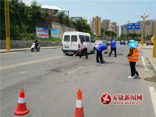 接群众举报,316国道后张岭沿线沿路抛洒石子,高新区城管执法大队立即组织执法队员和环卫工人到现场清理,事后会调取监控,展开调查,并严肃处理。