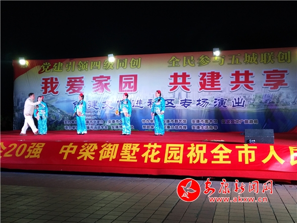 安康新闻网讯(实习记者 陆青波)8月31日,“党建引领四级同创、全民参与五城联创,我爱家园、共建共享”创建文化进社区专场演出活动在金州广场举行。活动由市创建办、市文联主办,市诗词学会、安康博阅学社承办,市群艺馆、市图书馆、汉滨区文广旅游局协办。