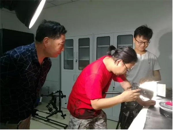 拍摄文物“鎏金铜蚕”