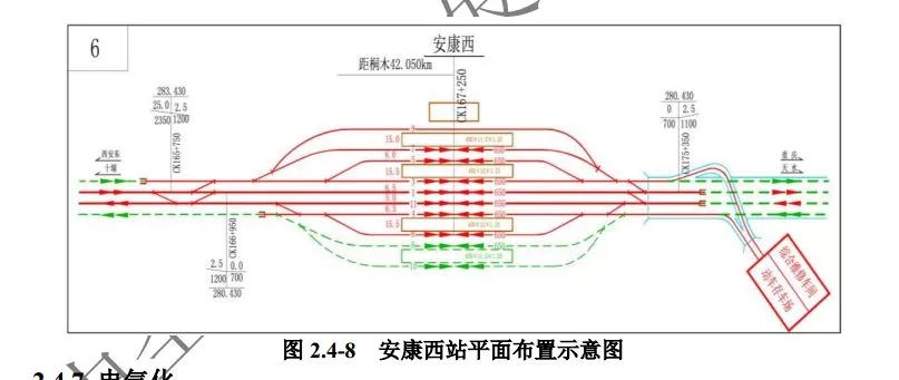 新建安康西站为安康枢纽主要客运站,办理始发作业,车站位于安康市高新区西侧、傅家河西岸,配套站前广场与城市规划紧密衔接。
